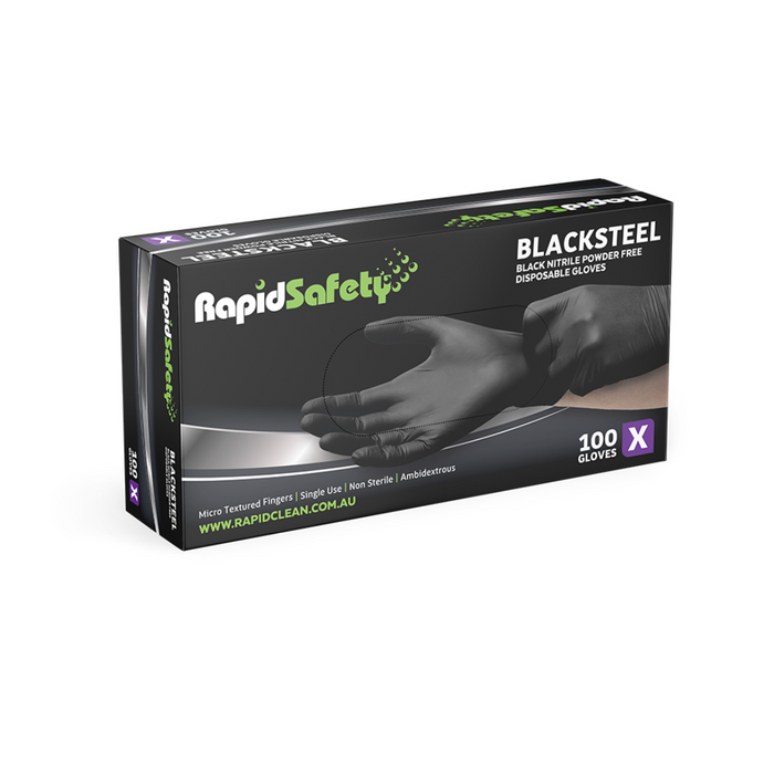 - Glove Nitrile Blacksteel Extra Large Rapid Safety PF Pkt 100