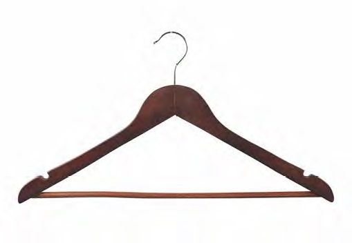 Timber Coat Hanger with contoured body design, notches & rail (Male), Black - 440mm width x 14mm thick. Ctn 100