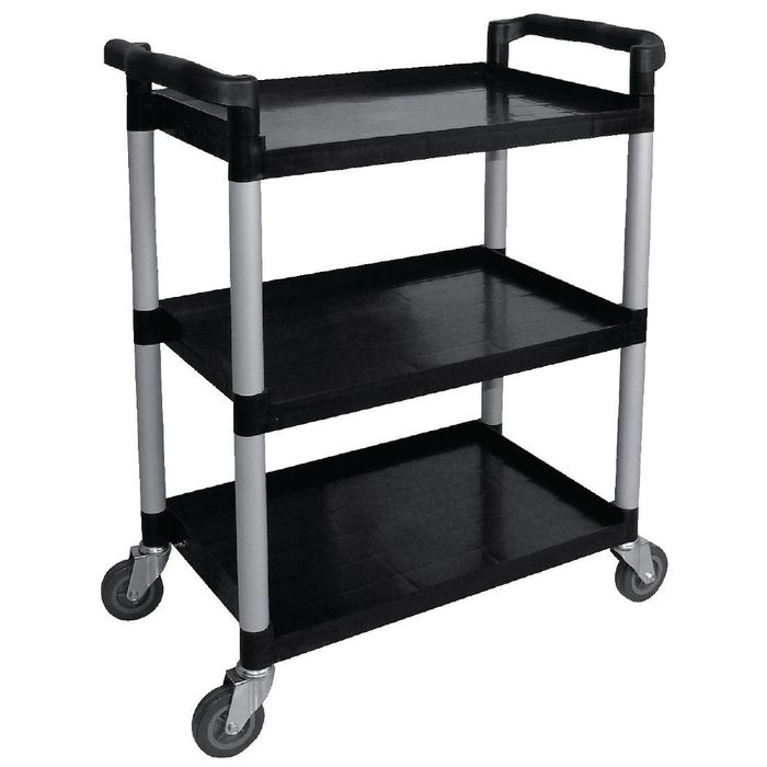 This compact and sturdy polypropylene utility trolley from Vogue has the durability to withstand constant use throughout hotels, restaurants and other establishments, helping you to clear, transport and store with ease. The large wheels glide over uneven floor surfaces, making it comfortable to use in any kitchen, dining area and more. Easy to clean for effortless hygiene.