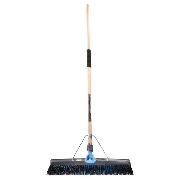 Extra stiff polypropylene bristles effectively collect large debris. Reversible head lasts twice as long. Steel brace gives extra support while sweeping. 25mm bamboo handle ensures superior strength & durability. Neoprene grip.