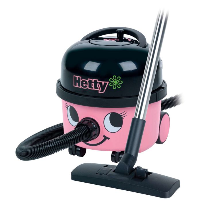 Numatic's Hetty dry vacuum available in 4 colours. Powerful 620W single speed machine. 10m cable with rewind system. Giant Tritex filter and Hepaflo dust bags.