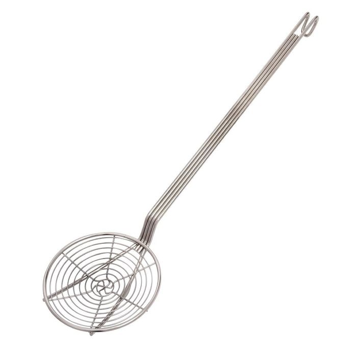 Using this large 23cm lifter from Vogue is a safe way of manually deep frying food, skimming stocks or blanching vegetables. With its extra long handle, the lifter keeps hands a safe distance from hot oil or liquid while maintaining complete control over your cooking tasks. Made from high quality nickel steel, it delivers strength, performance and reliability for an commercial kitchen.