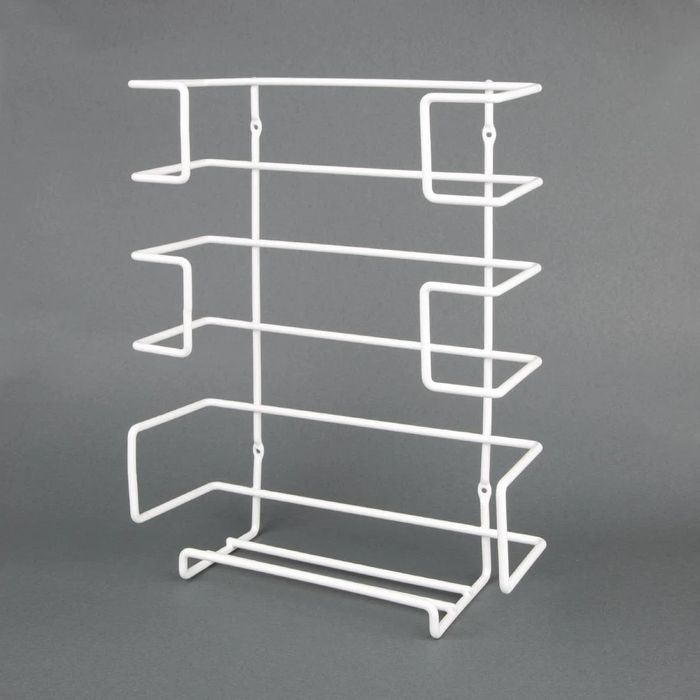 Wall mountable wire glove dispenser rack. Designed to dispense disposable gloves for quick easy access. Size (mm): 360(H) x 260(W) x 105(D). Supplied with fixings.