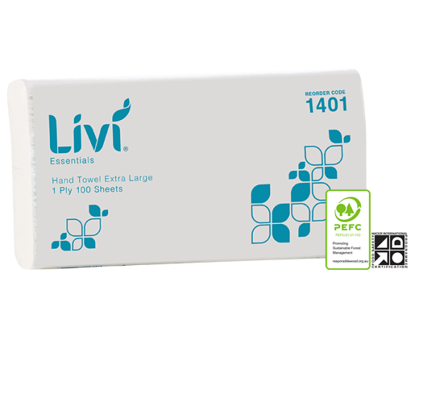 - Livi Essentials Hand Towel Extra Large 1 Ply 100 Sheets x 24 pkts