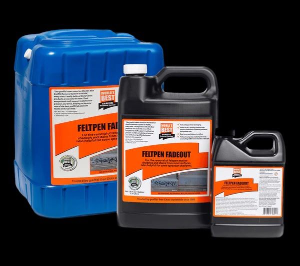 A world first, enabling the removal of permanent ink markers (that have impregnated or left a stain) from paint work, plastics, pre cast concrete, granite, terrazzo, stone and marble. People won’t believe what they see in front of their eyes, and neither will you – we guarantee it. Feltpen Fadeout is a biodegradable, brush on, wipe off product used for the removal of ink stains on smooth or porous surfaces, after (or during) graffiti has been dissolved as much as possible by either Bare Brick,