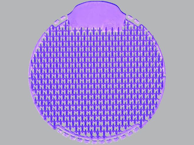 Unique double-sided slant design deflects and defuses urine Prevents installation errors and keeps floors & shoes clean
